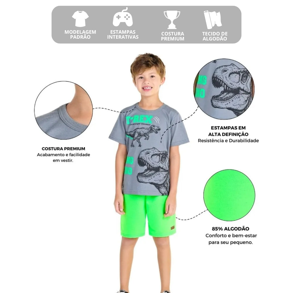 Tudo com tecidos leves, macios e resistentes, ideais para brincar, ir à escola ou ficar em casa com conforto.