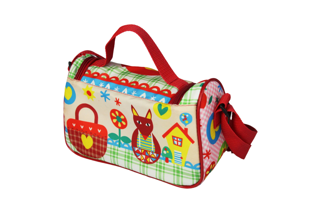Super estilosa! Com desenhos super coloridos e descolados! As crianças adoram carregar seus lanches nas térmicas pequenas Ó Design. A alça regulável permite ajustar a altura.